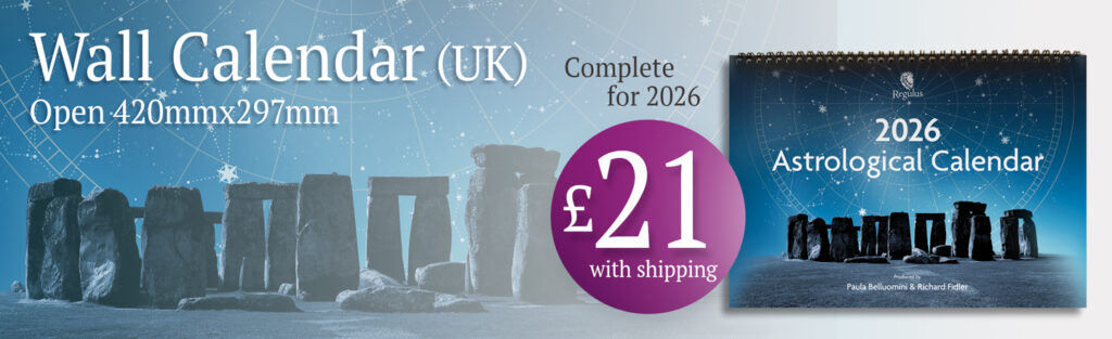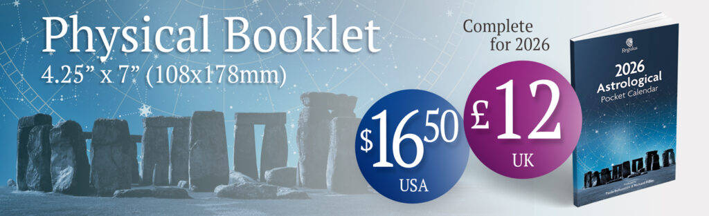 Regulus Publishing is delighted to present three expertly designed versions of our Astrological Calendars for 2026 to help you stay abreast of cosmic cycles. We have the Pocket Calendar (coming soon), the UK-only Wall Calendar, and the instantly downloadable e-Calendar. Each is created to support your awareness of the ever-shifting celestial cycles.