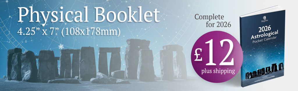 Regulus Publishing is delighted to present three expertly designed versions of our Astrological Calendars for 2026 to help you stay abreast of cosmic cycles. We have the Pocket Calendar (coming soon), the UK-only Wall Calendar, and the instantly downloadable e-Calendar. Each is created to support your awareness of the ever-shifting celestial cycles.
